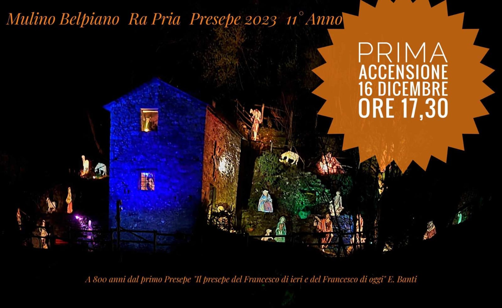 Pubblicato da: belpiano | Pubblicato il: 5 dicembre 2024The first switch-on is scheduled for December 21st from 5.30pm to 7.30pm, followed by the subsequent ones, holidays and pre-holidays until January 7th, same time and again on subsequent Sundays upon reservation until the first of February. By contacting us you can also visit it on evenings when it is not switched on.