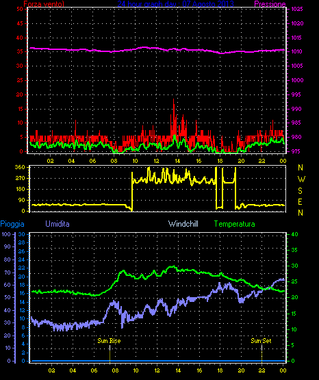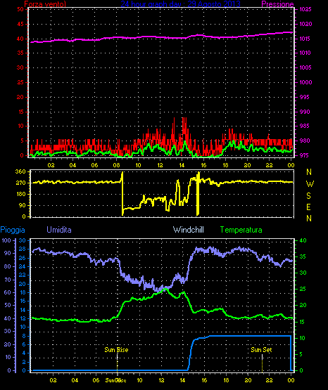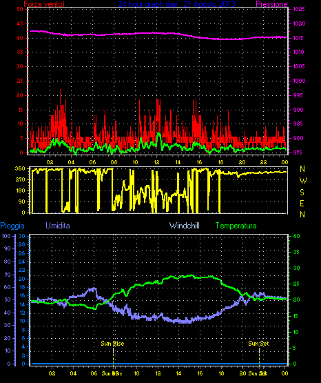 Il massimo windspeed = 14.8 kmh from 135°( SE) giorno 20 tempo 04:18