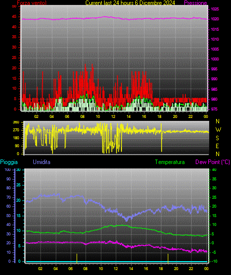 Il massimo windspeed = 24.1 kmh from 210°(SSW) giorno 19 tempo 19:28