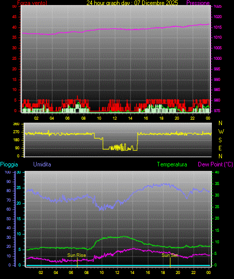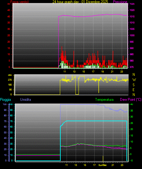 Velocità massima di raffica = 16.7 km/h da 295°(WNW) giorno 01 tempo 10:12