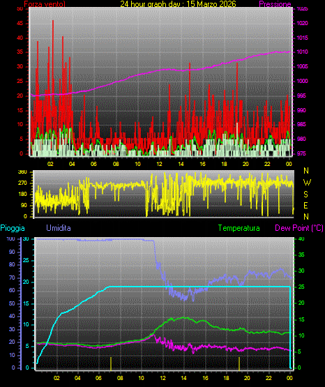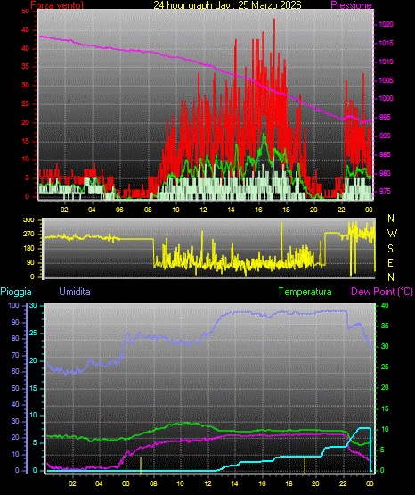 Il massimo windspeed = 25.9 kmh from 330°(NNW) giorno 31 tempo 13:42