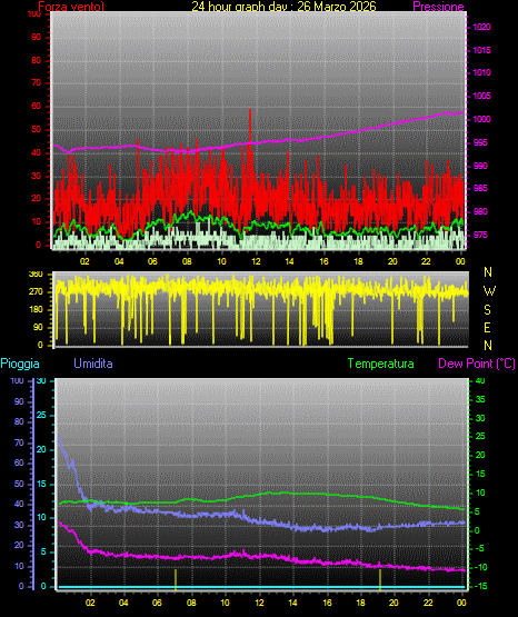 Velocità massima di raffica = 59.2 km/h from 315°( NW) giorno 26 tempo 11:37