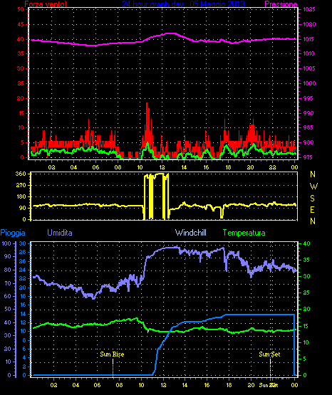 Il massimo windspeed = 20.4 kmh from 090°( E ) giorno 24 tempo 08:05