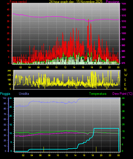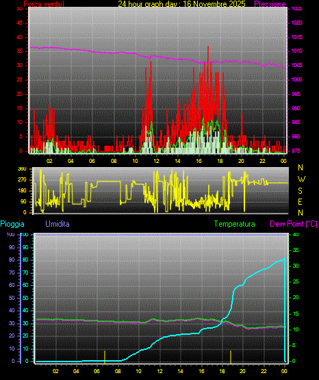 Massima pioggia per minuto = 1.2 mm giorno 30 tempo 22:24