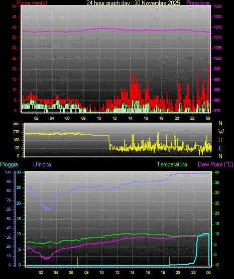 Maximum dewpoint = 9.6°C giorno 30 tempo 23:33