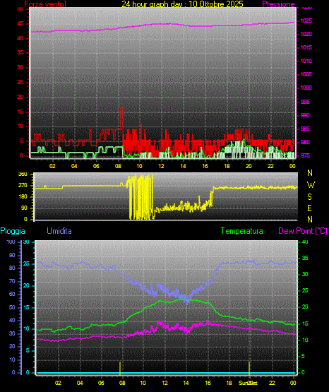 Velocità massima di raffica = 16.7 km/h da 299°(WNW) giorno 10 tempo 08:21