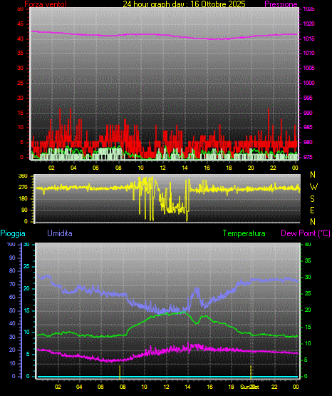 Massima pioggia per minuto = 0.0 mm giorno 16 tempo 23:59