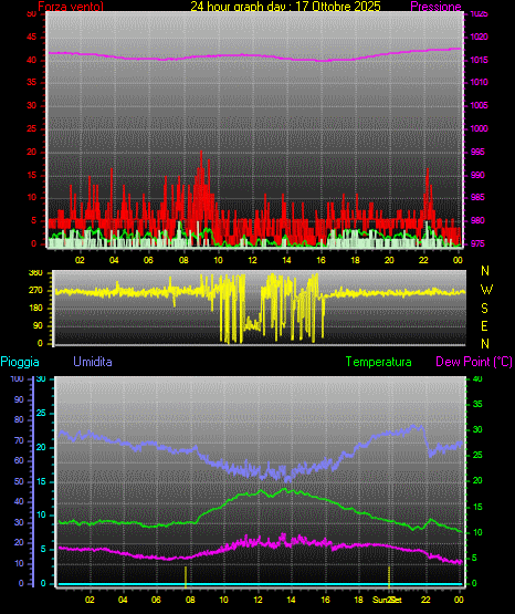 Velocità massima di raffica = 20.4 km/h from 248°(WSW) giorno 17 tempo 09:01