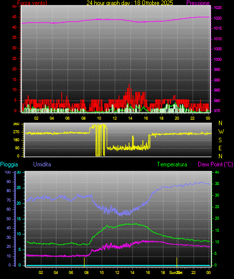 Massima pioggia per minuto = 0.0 mm giorno 18 tempo 23:59