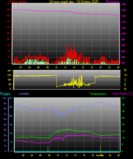 Massima pioggia per minuto = 0.0 mm giorno 19 tempo 23:59