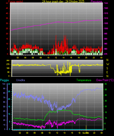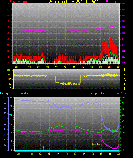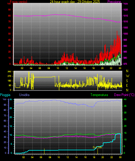Il massimo windspeed = 25.9 kmh from 147°(SSE) giorno 29 tempo 23:44