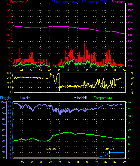Il massimo windspeed = 18.5 kmh from 090°( E ) giorno 08 tempo 23:25