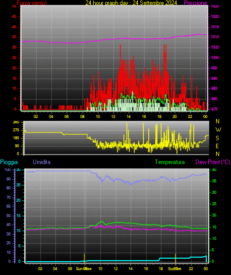 Il massimo windspeed = 31.5 kmh from 250°(WSW) giorno 26 tempo 19:56